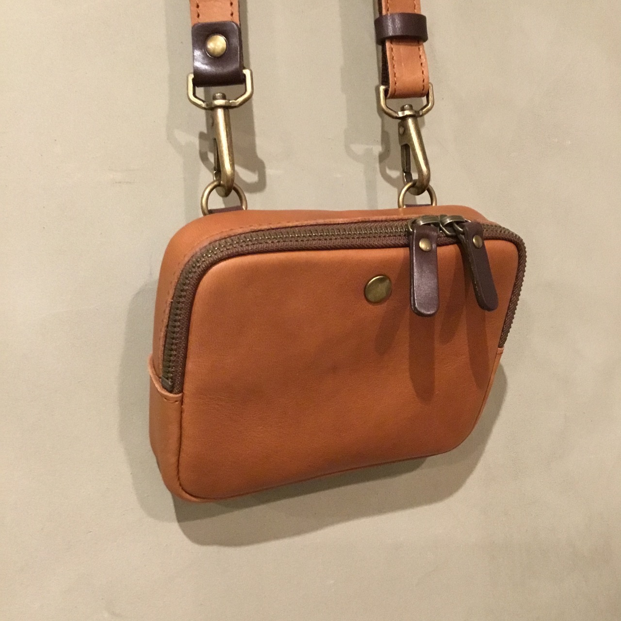 内装ポケットのホックの頭が、シンプルな表面のアクセントに!
