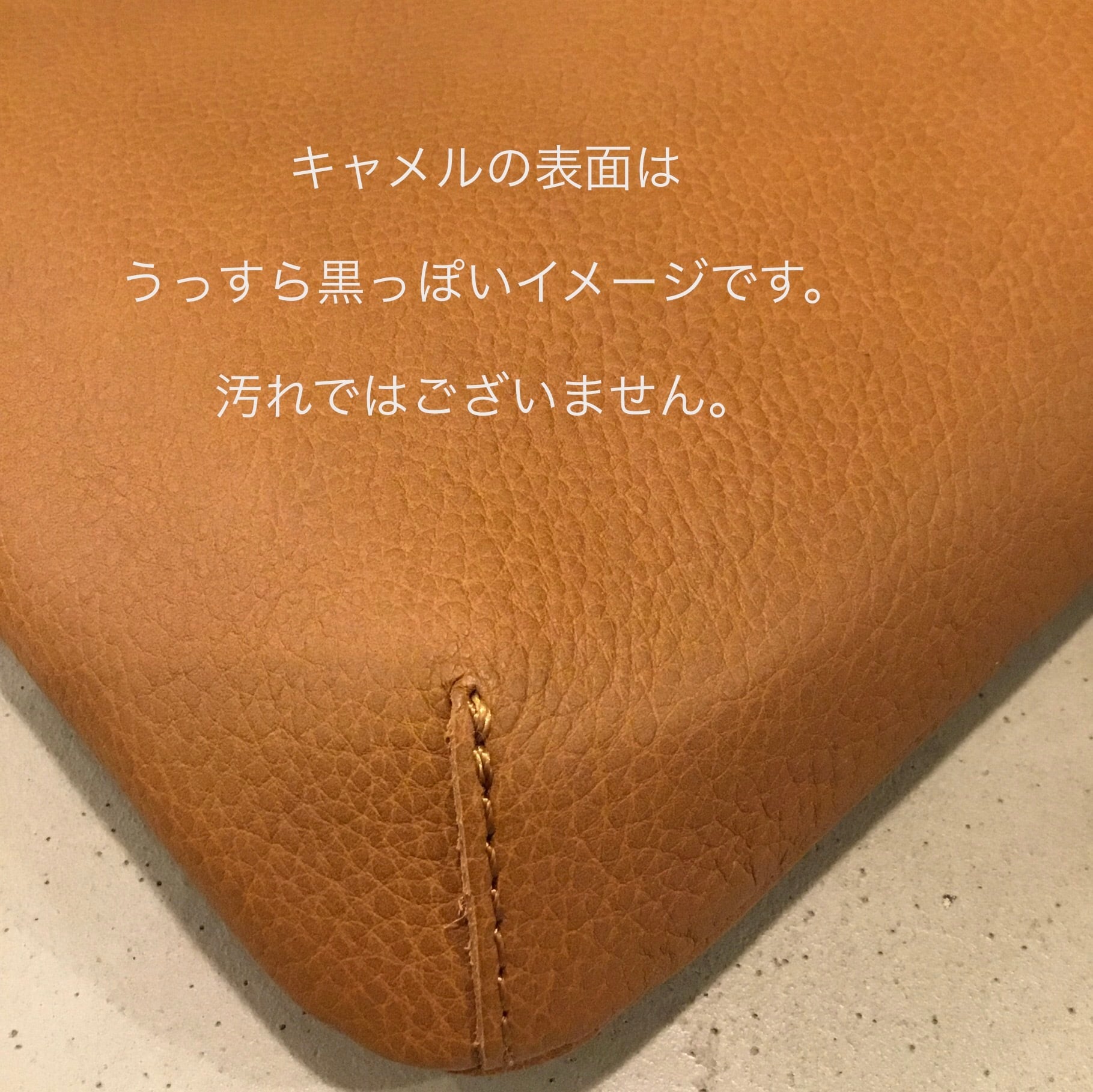 キャメルの革は表面が薄っすら黒っぽくなっておりますが汚れではございません。
