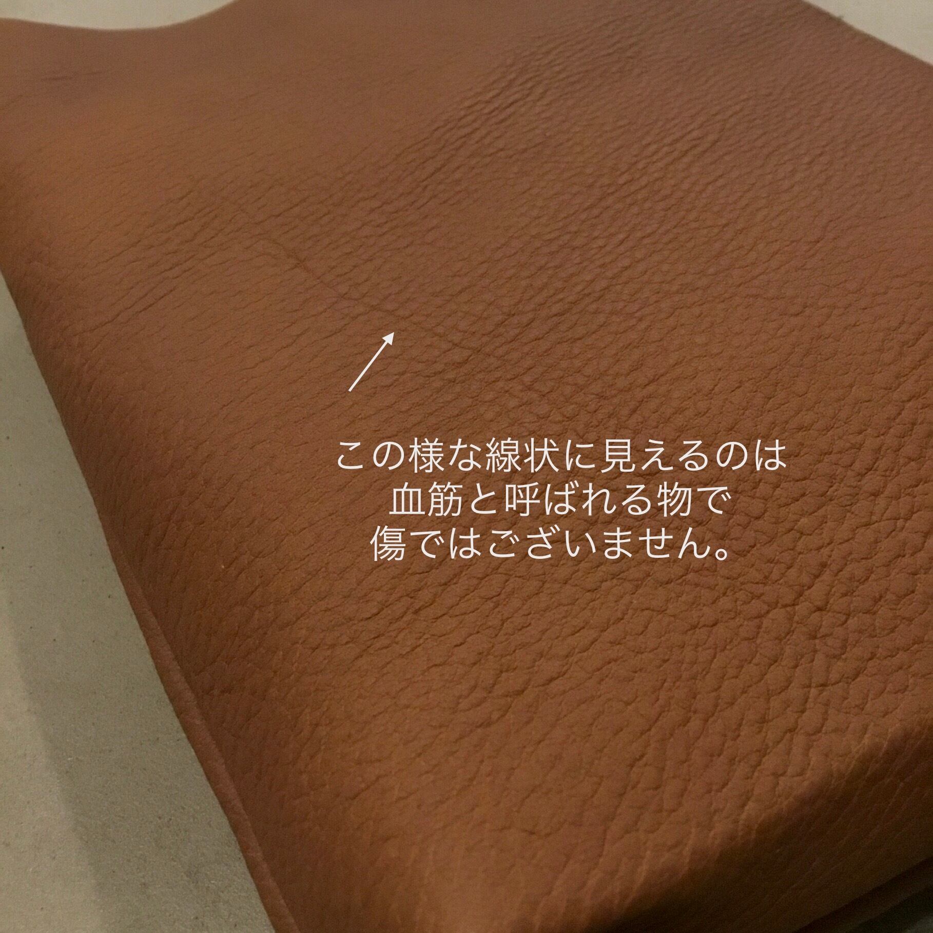 革のスレ・シワ・血筋・シミ・色ムラ・傷などは避けられません。